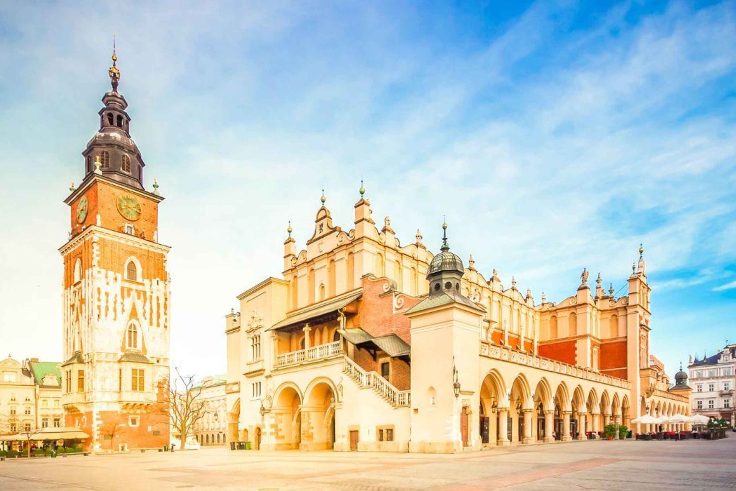 Efter at have udforsket dybderne i Wieliczka-saltminen vender du tilbage til Krakow, hvor du får mulighed for at fordybe dig i den pulserende energi i denne historiske by. Gå en tur gennem de brostensbelagte gader i Krakows gamle bydel, som er på UNESCO's verdensarvsliste og kendt for sin middelalderlige arkitektur og charmerende atmosfære. Beundr ikoniske vartegn som Klædehallen, Mariakirken og de historiske bymure, der hver især giver et glimt af Krakows rige fortid.