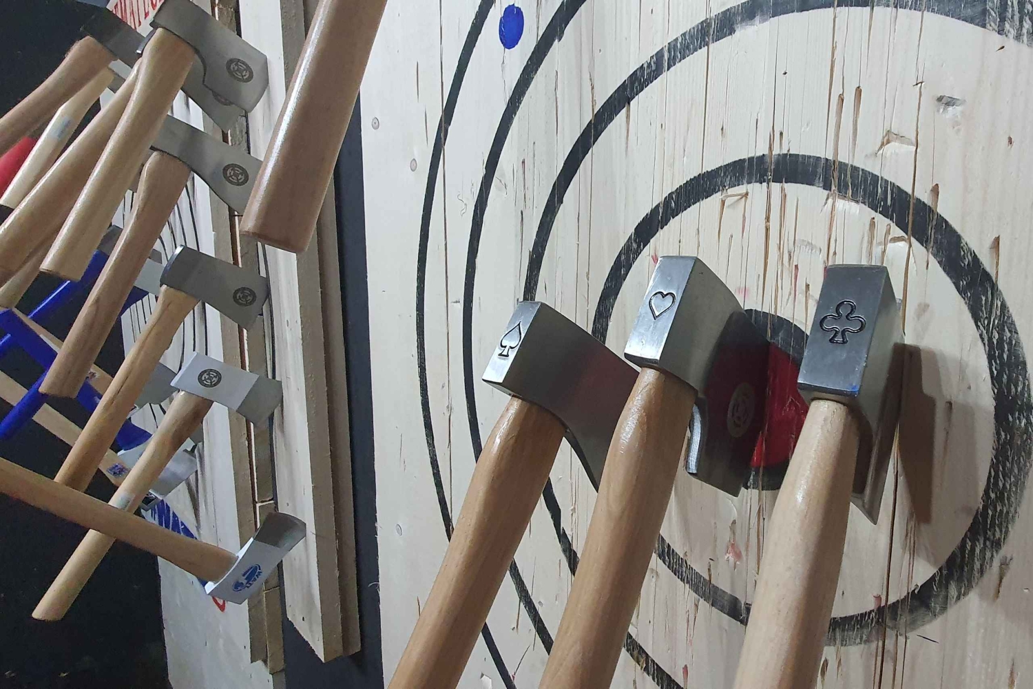 Vi er medlem af World Axe Throwing League, og vi underviser i professionelle teknikker til at kaste med økser. I løbet af 90 minutters aktivitet lærer du at kaste med kasteøkse og tomahawk.