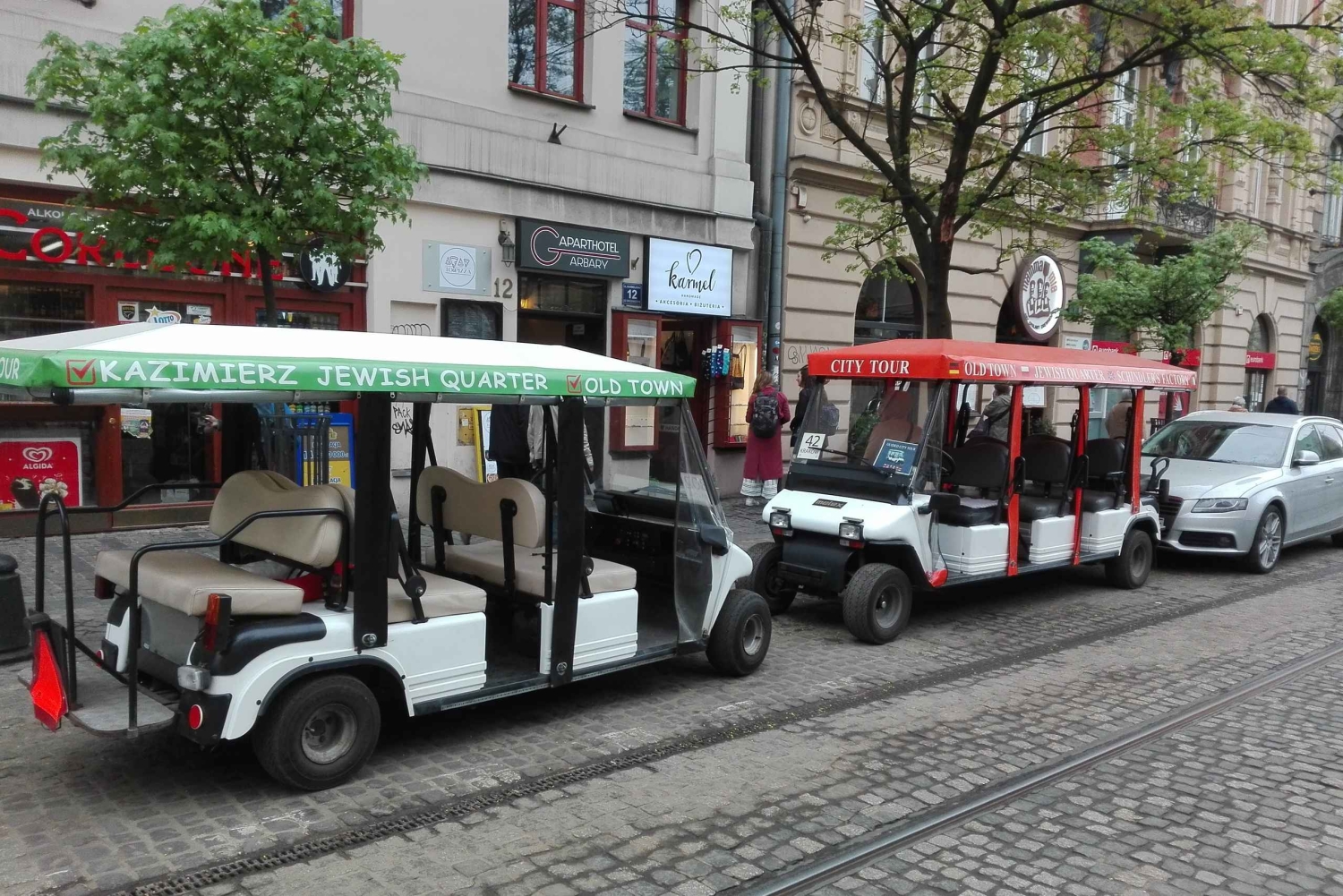 Machen Sie eine Tour durch Krakau im Elektroauto mit einem professionellen Fahrer, der Englisch, Französisch, Russisch und Polnisch spricht. In der Altstadt von Krakau sehen Sie die historischen Sehenswürdigkeiten der Stadt wie die alten Straßen, die Florianskirche, das Schloss und die Barbakane. Besuchen Sie dann Kazimierz, das jüdische Viertel, wo Sie sowohl christliche Kirchen als auch jüdische Synagogen sehen.