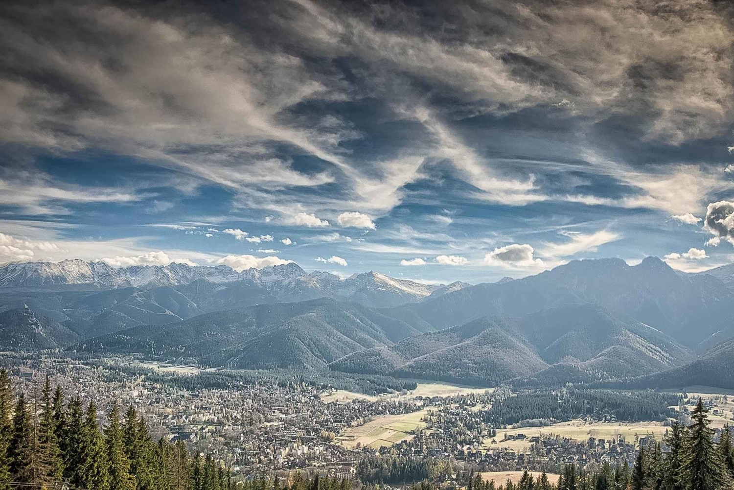Besuche auf einer Tagestour von Krakau aus die charmante Bergstadt Zakopane mit ihren malerischen Aussichten. Fahr mit der Seilbahn auf den Gubałówka-Berg, probier einheimischen Käse und Spirituosen und sieh dir die einzigartige Holzarchitektur an.