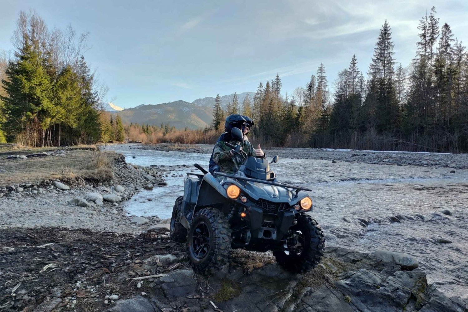 Experimenta el auténtico off-road en terreno montañoso abrupto con los quads Can-Am diseñados específicamente para este tipo de conducción. Nuestro viaje comienza en un punto de encuentro en el casco antiguo o en tu hotel. Tardarás unas 2 horas en llegar a la base de los quads, situada cerca de una de las mayores estaciones de esquí. Tras una sesión informativa sobre seguridad, te pones los pantalones y chaquetas impermeables y emprendes un tour guiado por las montañas de la zona. Recuerda que el pago del alquiler de los quads se realiza en el lugar. Los quads son biplaza, por lo que dos personas pueden montar juntas e intercambiarse detrás del manillar en el descanso de mitad de camino.