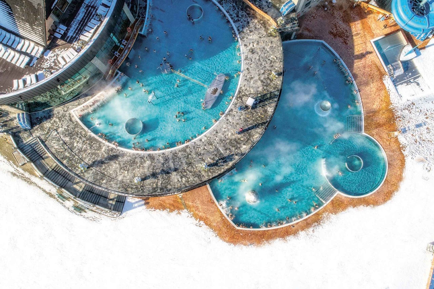 A sólo 99 kilómetros de Cracovia, en el corazón de Podhale, te espera un impresionante complejo acuático. Este complejo, inaugurado en 2016, cuenta con una colección de más de 30 piscinas que prometen una experiencia realmente inolvidable. Estas piscinas y jacuzzis están cuidadosamente situados tanto en el interior como en el exterior, y ofrecen cautivadoras vistas de los montes Tatra. Las aguas terapéuticas oscilan entre los relajantes 90°F y los rejuvenecedores 97°F, ofreciendo revitalización para tu cuerpo y tu espíritu.