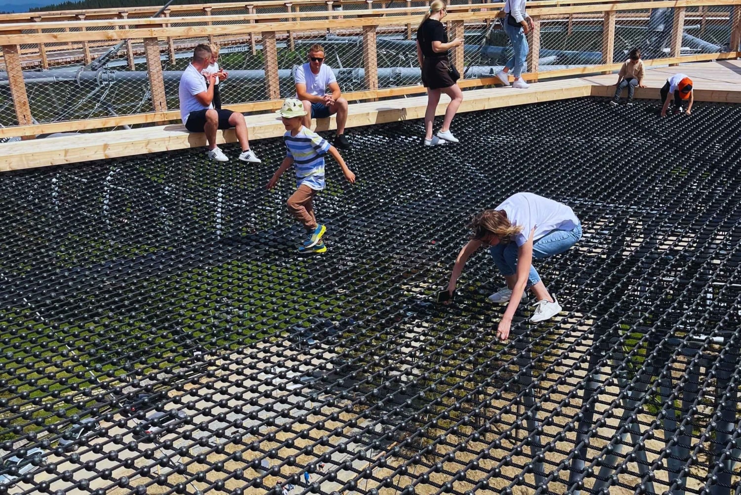 - 854 metriä pitkä puinen polku, joka kulkee ripustettujen käytävien ja lasiterassien läpi.