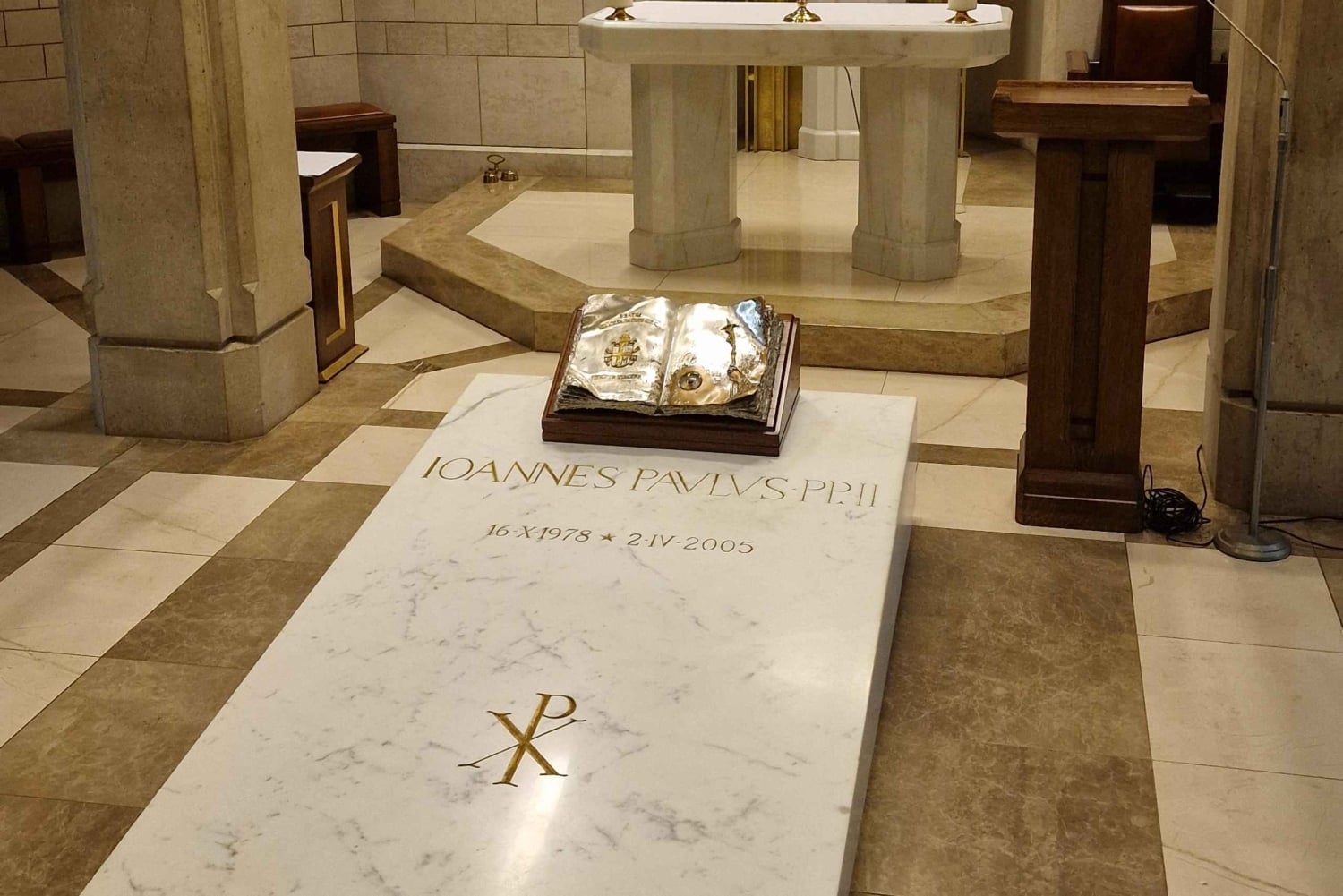 Embarquez pour une visite émouvante et enrichissante qui commence par une prise en charge pratique à votre hôtel. Votre voyage vous mènera à Łagiewnik, où vous visiterez d'abord le Centre Jean-Paul II. Vous pourrez y voir les vêtements sacrés portés lors de la tentative d'assassinat de Sa Sainteté, ainsi qu'une relique vénérée, une fiole contenant une goutte de son sang, qui, ensemble, offrent un aperçu saisissant de sa vie et de son héritage.