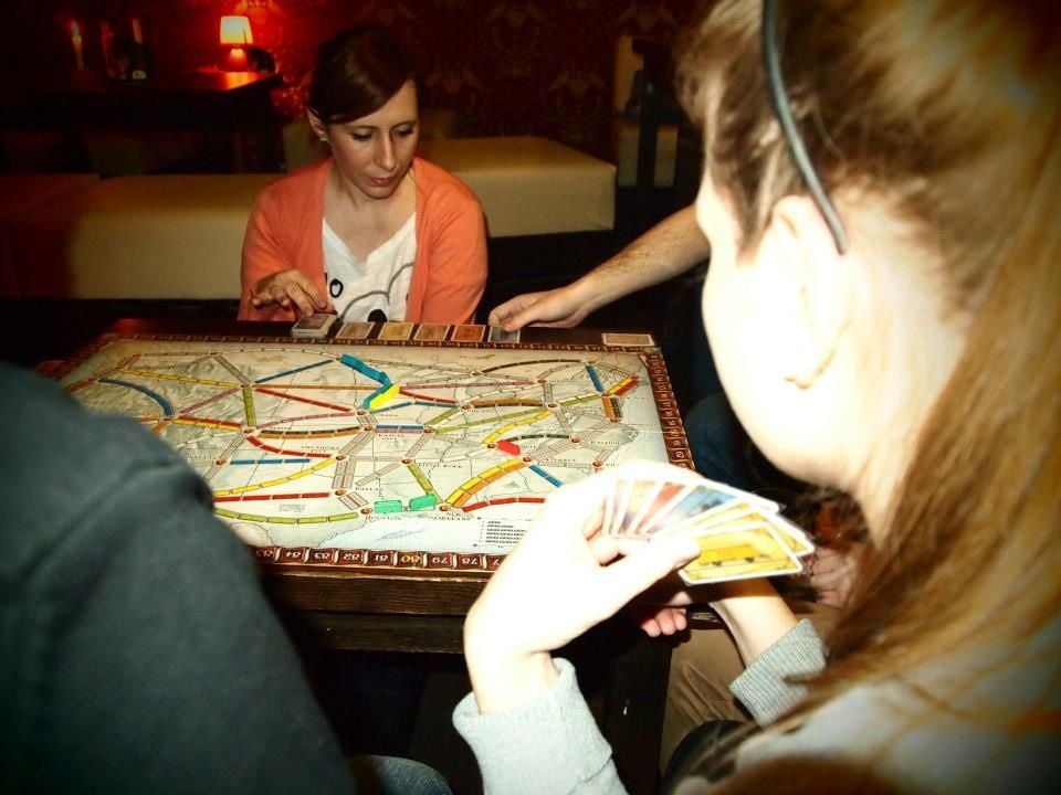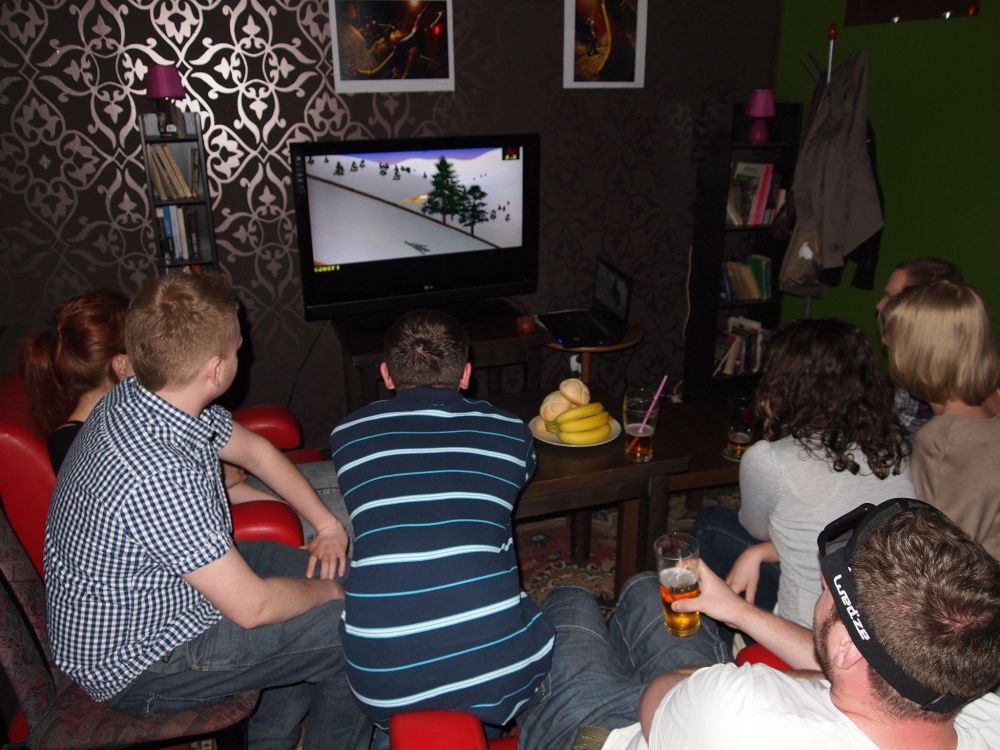 People come here to enjoy a drink, have a chat and play classic board games and computer games. The décor is very homely with tables and chairs closely put together which makes meeting new people very easy. Lots of pictures are located around the room as well as bookshelves randomly hanging from different sections of the walls. Vinyl records decorate parts of the room and combine with swirling designs and plain but colourfully painted walls to create an interior that is not very uniform and therein lies the charm. This is not the type of modern bar that alienates people from each other.
