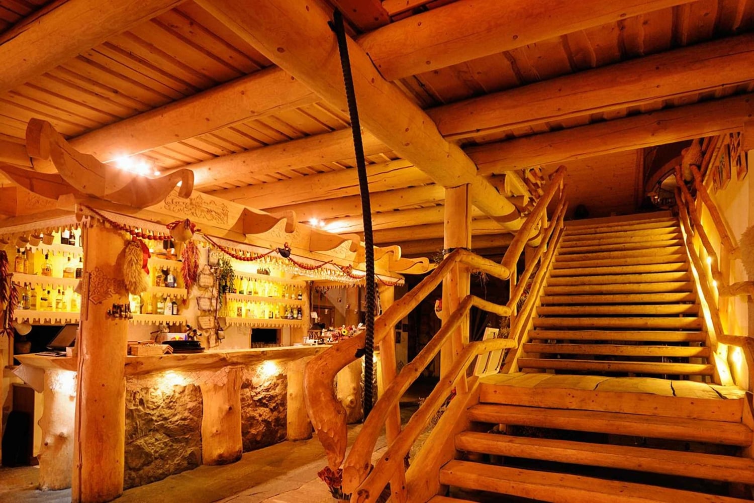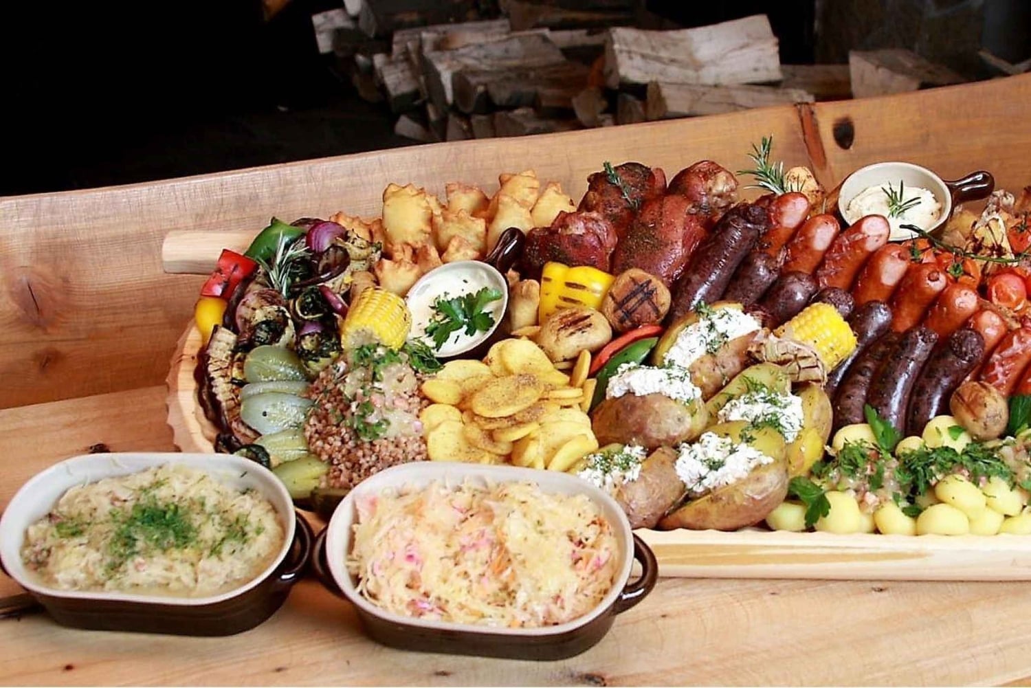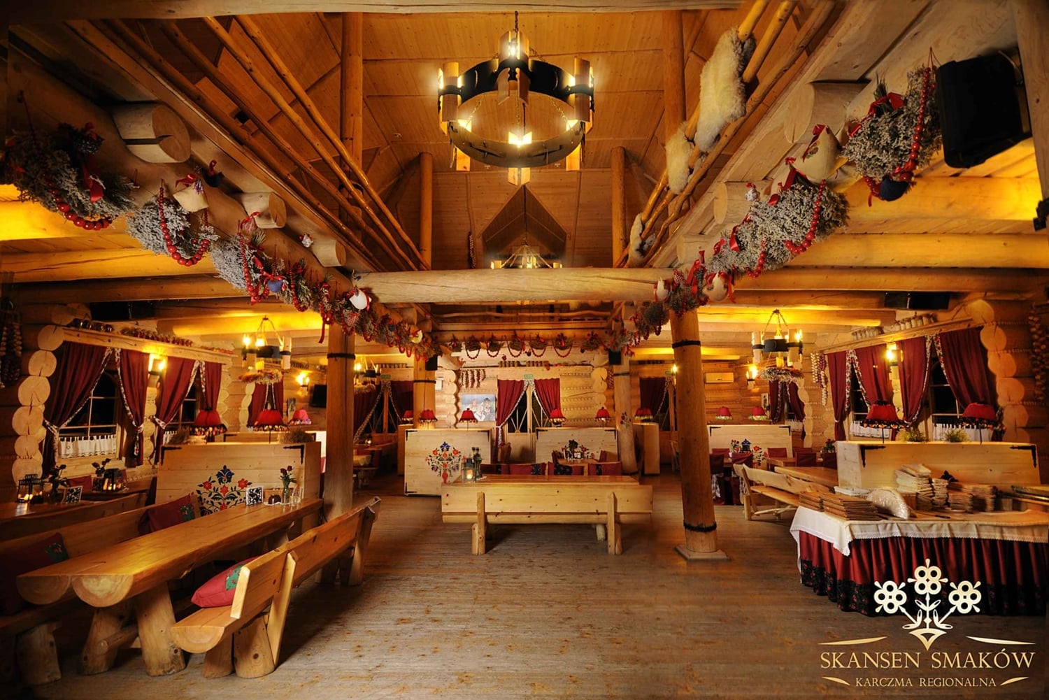 Skansen Smaków is gemaakt van ronde houten boomstammen volgens een eeuwenoude traditionele methode en geeft het gevoel op een magische plek met karakter te zijn. Het tuinrestaurant nodigt je uit om tijd door te brengen in de natuur, vooral 's avonds met live folkmuziek.