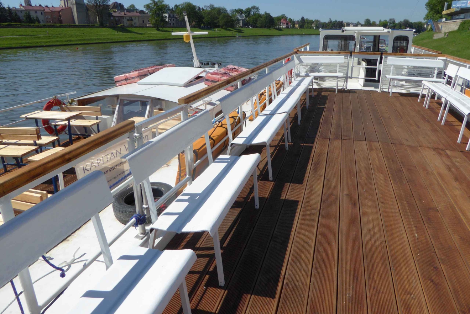 Derfra glir båten langs de pittoreske boulevardene, først i retning Zwierzyniec, forbi Norbertiner-søstrenes kloster, huset til pave Johannes Paul II, og deretter i retning Podgórze og Kazimierz-distriktene. Vi passerer kjente severdigheter som Church on the Rock, Mangha Museum, Bernatka Footbridge og Cricoteka. Turen ender tilbake ved Wawel-slottet.
