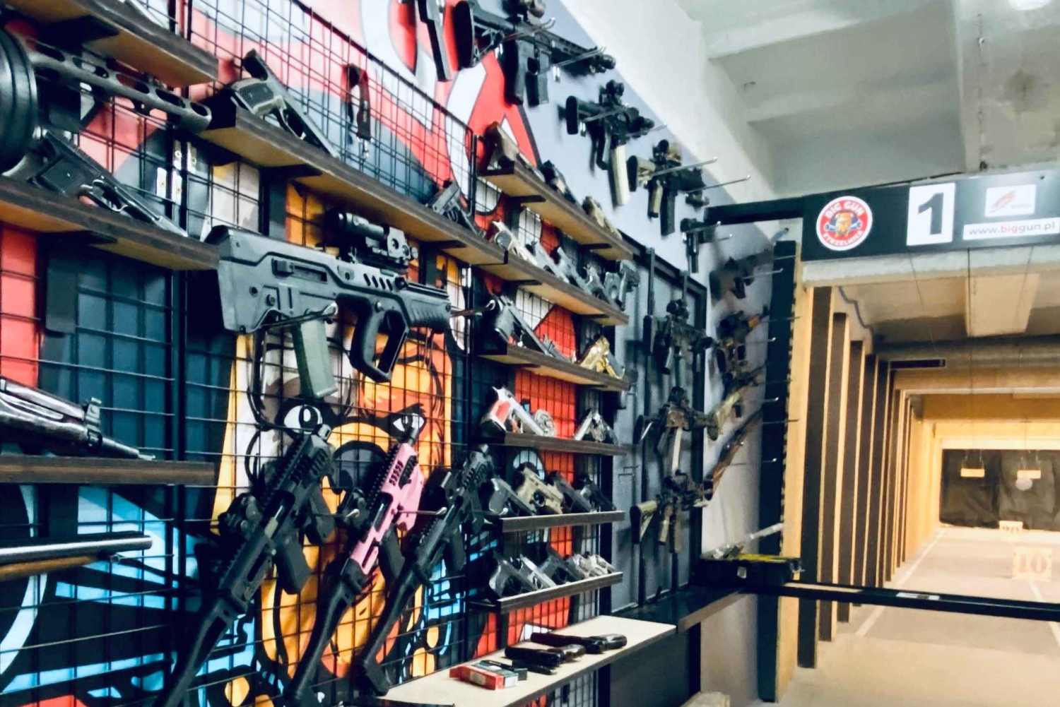 BIG GUN é um lugar onde o profissionalismo se combina com a atenção à segurança. Os nossos instrutores qualificados, que são atiradores ativos e ex-representantes da Polónia, garantem o mais alto padrão de serviço e conforto no tiro. Cada treino é conduzido com uma abordagem individual, o que permite um ajuste preciso do nível de dificuldade e das técnicas às habilidades do cliente. Atirar em Cracóvia nunca foi tão seguro e profissional. Aproveite o nosso treino de tiro em Cracóvia e desfrute de uma experiência excelente! Vá ao nosso campo de tiro em Cracóvia e sinta a adrenalina que o tiro com estes modelos únicos proporciona!