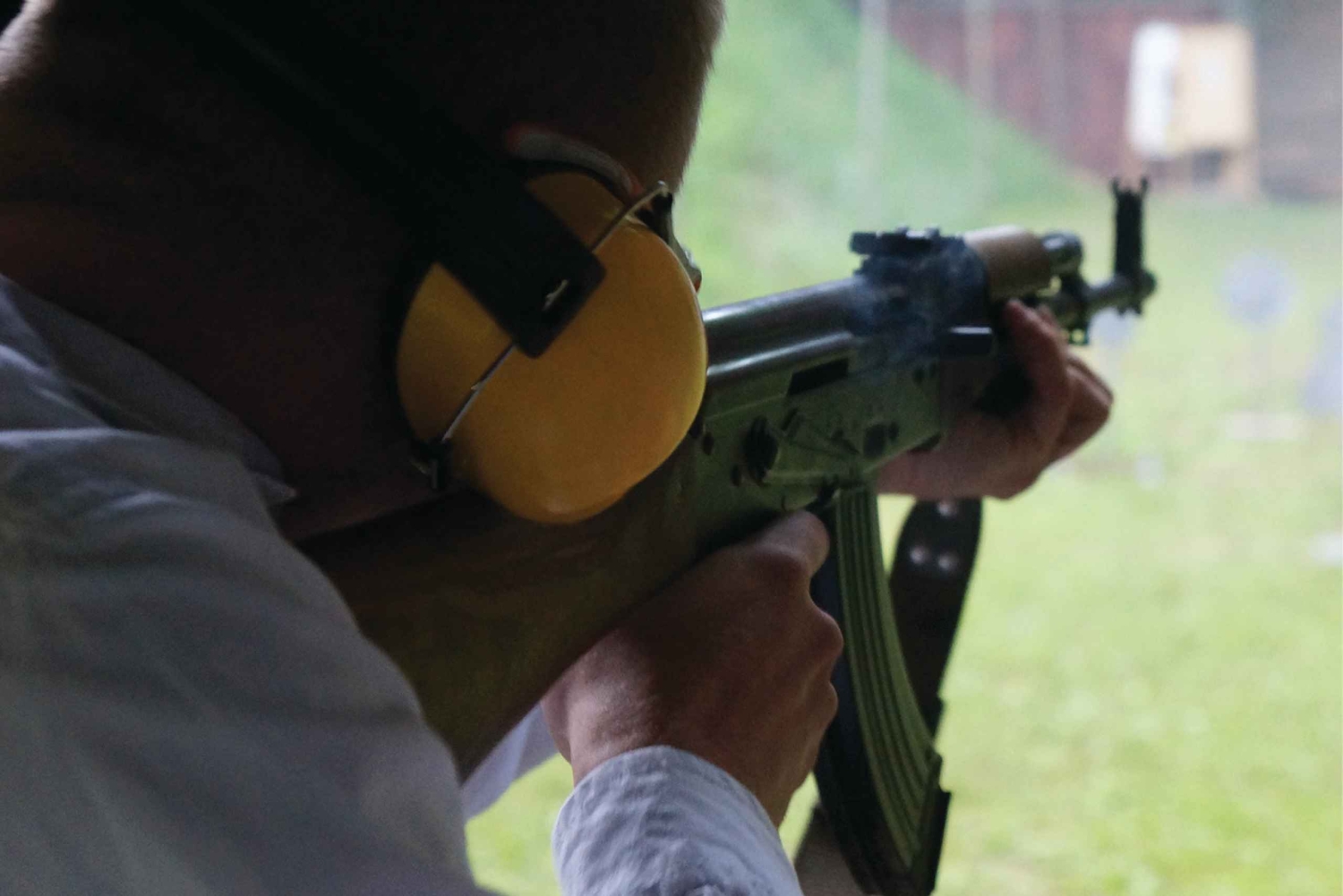 Depois do serviço de busca no teu alojamento, serás levado a 25 minutos de Cracóvia para uma antiga base militar na floresta. Esta foi transformada num campo de tiro profissional. Um instrutor profissional ensinar-te-á a manejar armas reais, passo a passo, desde a pequena Glock-17 até às potentes espingardas.
