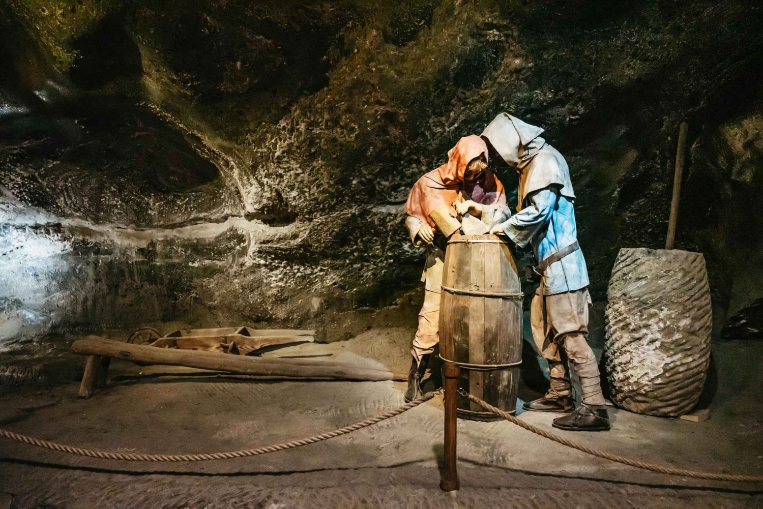 - Det finns 800 trappsteg att klättra, varav 350 i början tar dig ner i gruvan. Gruvan har ett hälsosamt mikroklimat. Turen varar cirka två timmar. Temperaturen under jord är cirka 17-18 ºC. På grund av tillgängligheten av guider och biljetter i saltgruvan kan upphämtningstiderna komma att ändras.